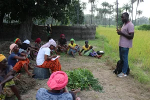 Entrepreneurs du Monde and its partner Fansoto train vulnerable women farmers in more resilient agricultural practices (compost, biopesticides) through accessible and hands-on farmer field schools.
