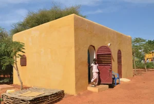 They participate in 12 awareness sessions and paid practical building sites, becoming masons or site supervisors to construct three climate-adapted buildings.