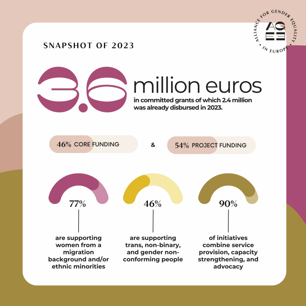 ✨ Concrètement, l’Alliance a distribué 3,5 millions €, soutenant ainsi 28 organisations dans 16 pays européens, et démontrant ainsi l’efficacité d’une approche collaborative dans la promotion de l’égalité de genre en Europe.