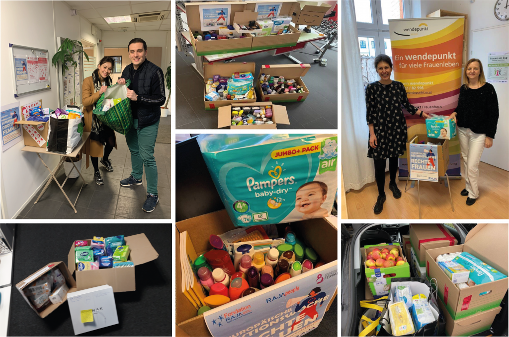 Cet engagement collectif s’est notamment manifesté par une grande collecte solidaire de produits d’hygiène et de première nécessité, ou encore de denrées alimentaires et de produits pour bébés, au profit d’associations accompagnant les femmes vulnérables et en situation de précarité dans toute l’Europe. Découvrez les associations bénéficiaires dans notre article focus sur la collecte  !