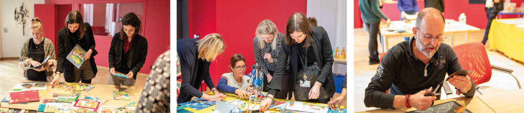 Une vingtaine de collaboratrices et collaborateurs se sont accordé.e.s un temps de « retour en enfance » en s’essayant au réemploi de jouets et de livres pour réaliser des magnets et des pochettes, en présence de l’association Rejoué, la première filière de réemploi de jouets d’occasion gérée par des femmes éloignées de l’emploi dans le cadre d’un chantier d’insertion.